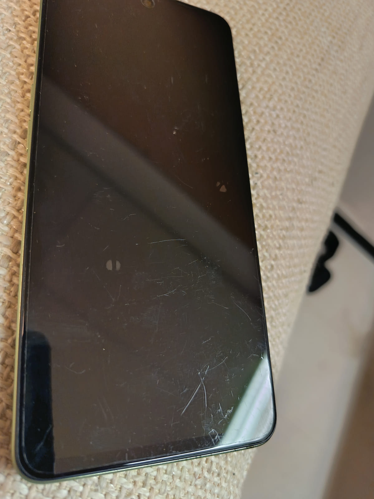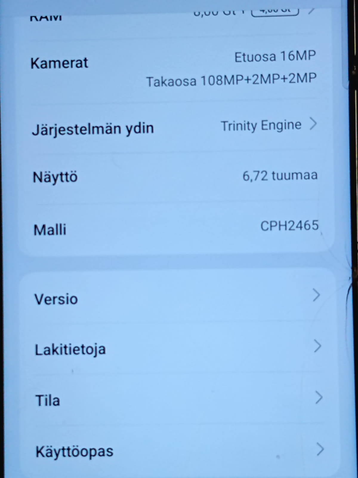Näyttö: Naarmuja ja halkeamia (näkyy kuvissa)