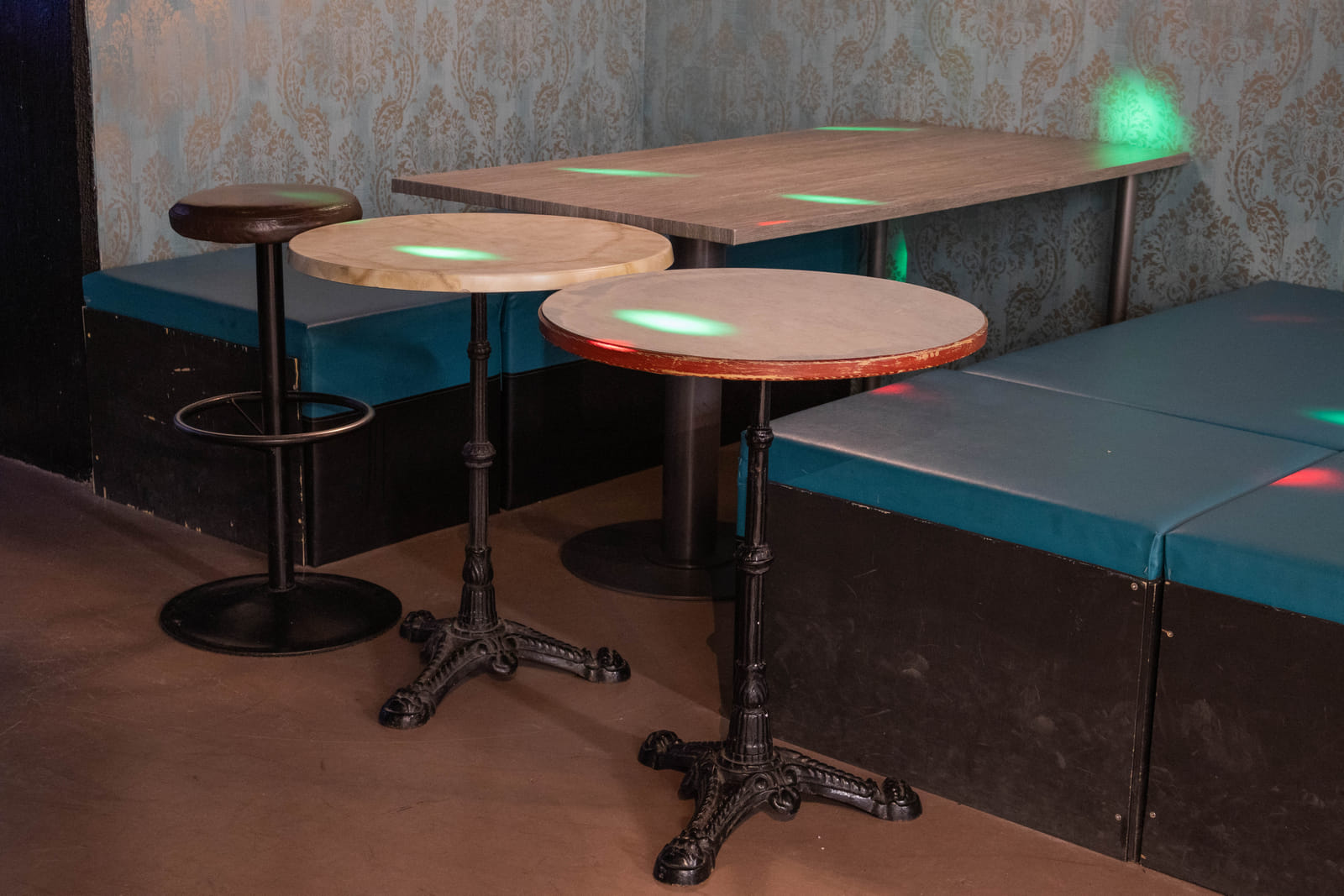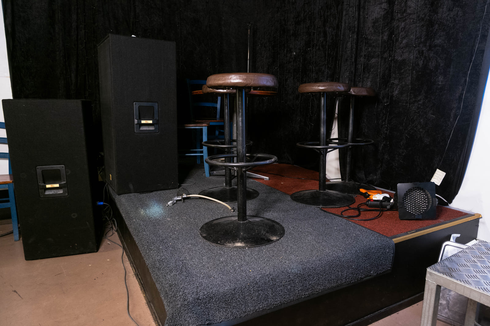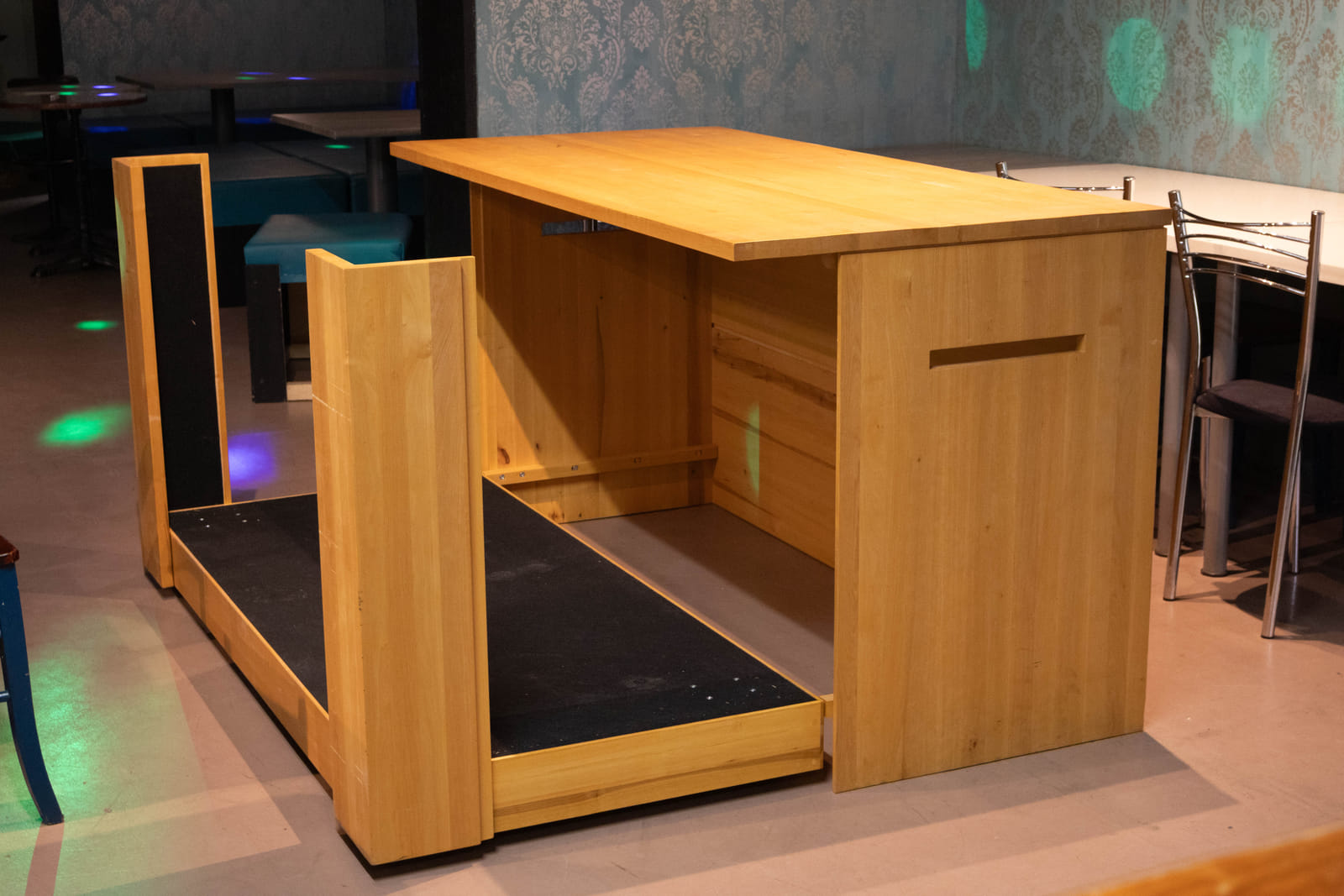 - 3 kpl korotettavaa pöytää n. 50cmx50cm - 2kpl PA 252 ECO MKII PA-kaiuttimet - Miksauspöytä Ultragraph FBQ-PRO - 4kpl baarijakkaraa - Pieni esiintymislava