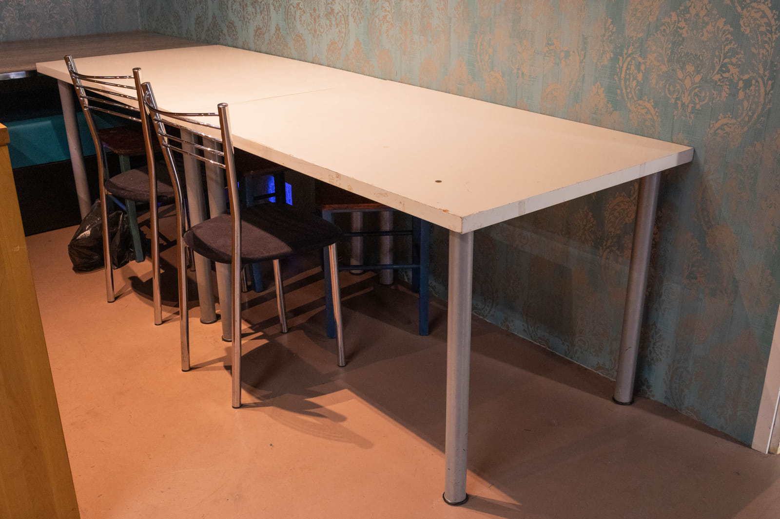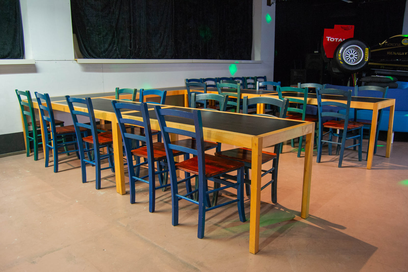 - Pöydät 6 kpl ja niihin kuuluvat tuolit 24 kpl, sekä pöytien säilytyslaatikko
