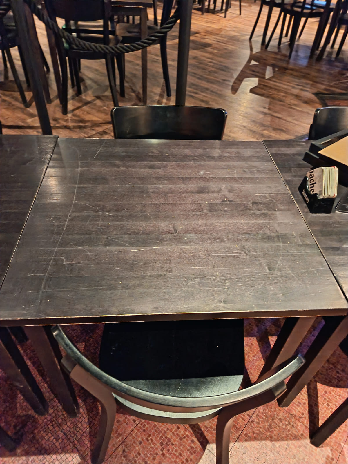 Kunto: käytetty; normaaleja ravintolakäytön jälkiä (naarmuja, värikulumaa), rakenteeltaan tukevia