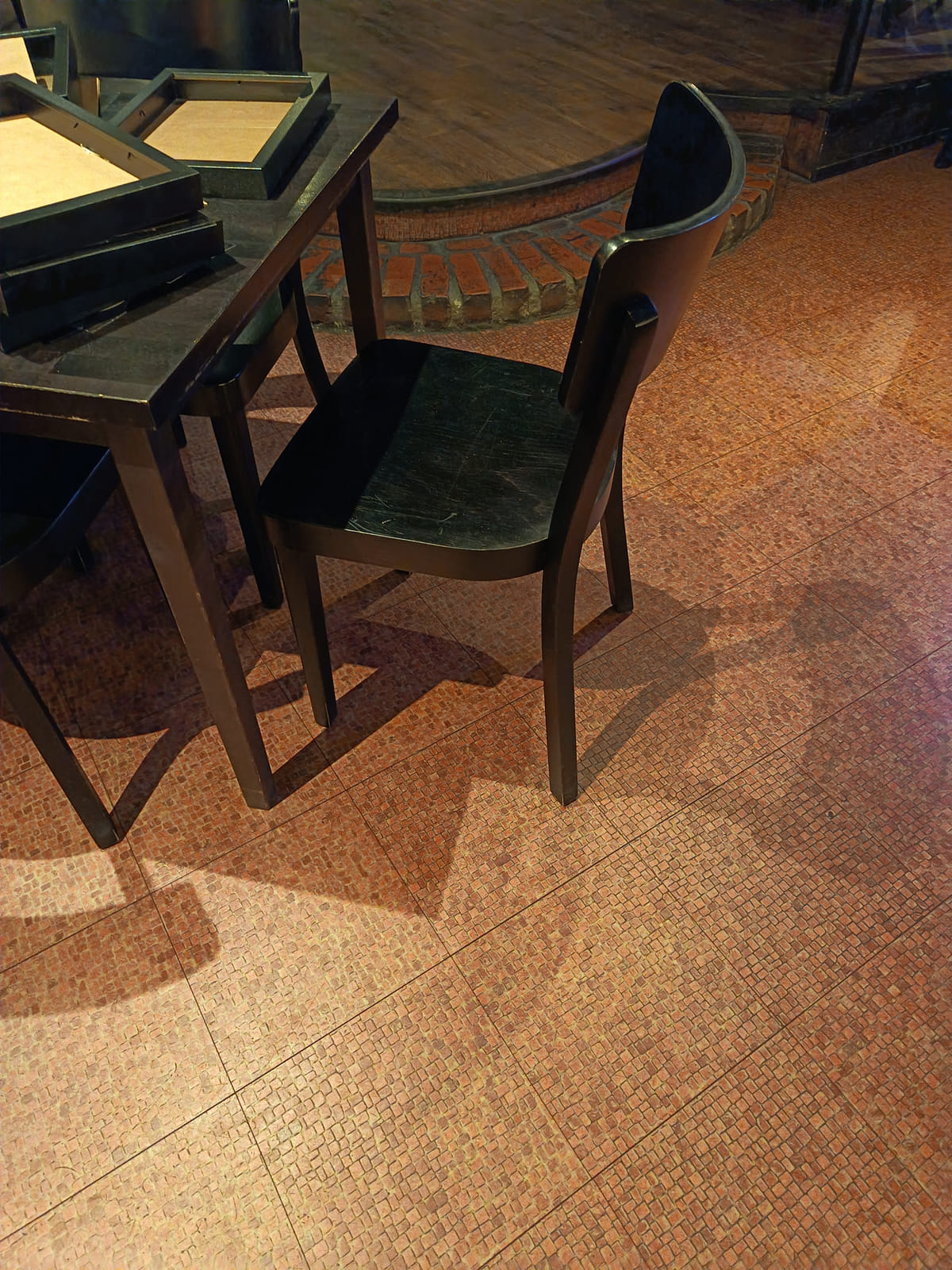 Kaikki kalusteet ovat olleet pitkään ravintolakäytössä.